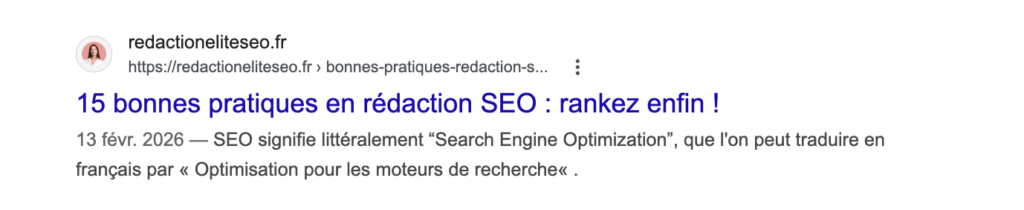 Nous sommes bientôt à la fin de nos bonnes pratiques de rédaction SEO, et il est temps d’aborder la question des métadonnées, soit ce que voit l’internaute avant même de cliquer sur votre lien :